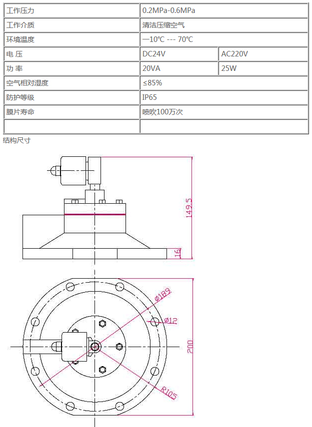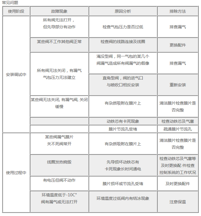 6. 該閥與氣包及噴吹連接管的密封件適用溫度為-10℃~70℃。如需高溫密封件,請(qǐng)訂購(gòu)時(shí)另行注明。