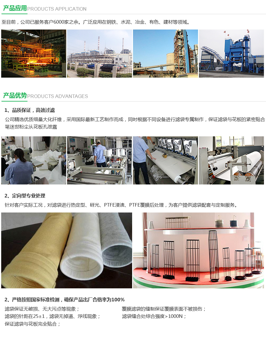 耐腐蝕除塵濾袋 是一種高效的除塵濾料,具有通氣性能好,除塵效率高,并且有一定的耐酸,耐堿及耐熱能力,編織過程中采用了多邊拉絨,提高了織物厚度,富有彈性,除塵效果非常好,除塵率可達99.999%。除塵濾袋是采取滌綸短纖或者長纖維為原料,使用壽命一般是玻璃纖維織物的4-6倍,有良好的透氣性,集塵率高,容清灰,除塵效率可達98.99%。
