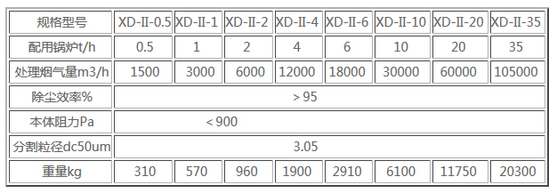 XD-II型多管旋風除塵器是一種高效的除塵器,除塵效率可達95%以上,除塵器本體阻力低于900Pa,用現(xiàn)有的鍋爐引風機就能保證鍋爐正常運行。本除塵器負荷適應(yīng)性好,在70%負荷時,除塵效率在94%以上。