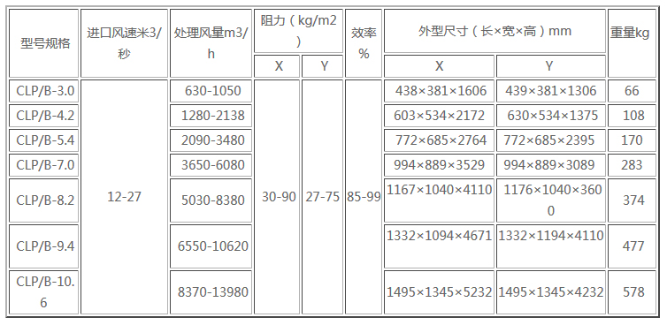 CLP/B型是根據(jù)在風(fēng)機(jī)前后位置不同分為X型(吸入式)和Y型(壓入式)其中X型是在除塵器本體增加了出口螺旋殼。X、Y型根據(jù)螺旋方向不同分為N型(左回旋)和S型(右回旋)。