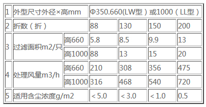 濾筒規(guī)格及參數(shù)
